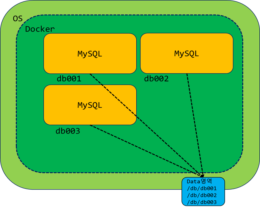 Docker MySQL 데이터파일들을 Docker 외부로 설정하여 Docker 컨테이너가 삭제되더라도 데이터파일은 삭제되지 않게 하여 데이터를 보존할 수 있도록 설정한다.