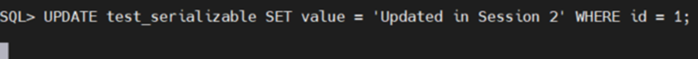 | session2 -- SERIALIZABLE 설정 SET TRANSACTION ISOLATION LEVEL SERIALIZABLE; -- 데이터 읽기 시도 SELECT * FROM test_serializable WHERE id = 1; ![]() -- 데이터 업데이트 시도 UPDATE test_serializable SET value = 'Updated in Session 2' WHERE id = 1; ![]() 2 Session LOCK 충돌로 인해 대기 상태 ![]() |