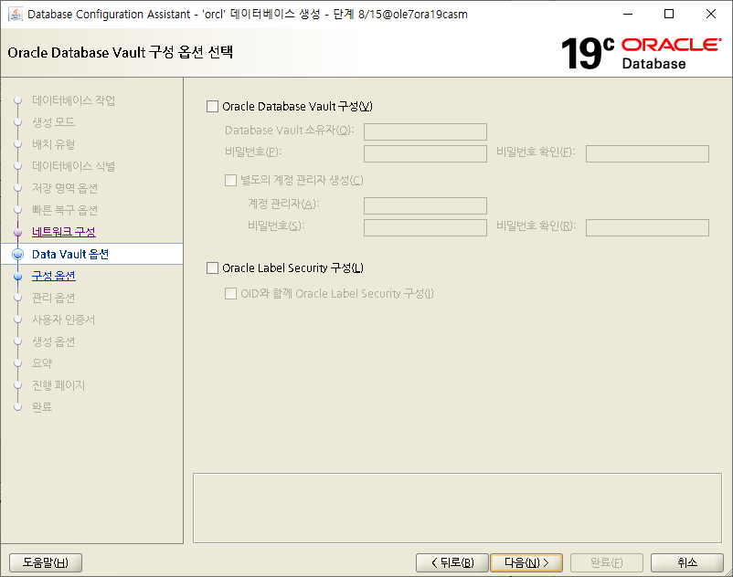 | [oracle@ole7ora19casm dbhome_1]$ pwd /u01/app/oracle/product/19.0.0/dbhome_1 [oracle@ole7ora19casm dbhome_1]$ ls -alrt 합계 2987996 -rwxr-xr-x. 1 oracle oinstall 3059705302 9월 30 2019 LINUX.X64_193000_db_home.zip drwxr-xr-x. 3 oracle oinstall 22 10월 29 16:26 .. drwxr-xr-x. 2 oracle oinstall 42 11월 8 13:11 . [oracle@ole7ora19casm dbhome_1]$ unzip LINUX.X64_193000_db_home.zip |