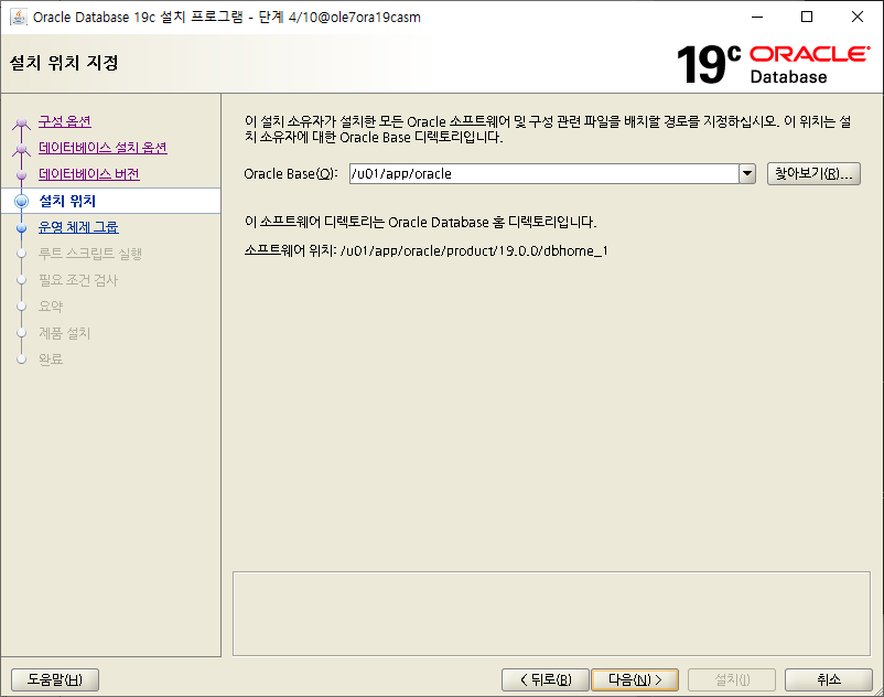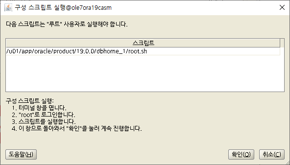 | [oracle@ole7ora19casm dbhome_1]$ pwd /u01/app/oracle/product/19.0.0/dbhome_1 [oracle@ole7ora19casm dbhome_1]$ ls -alrt 합계 2987996 -rwxr-xr-x. 1 oracle oinstall 3059705302 9월 30 2019 LINUX.X64_193000_db_home.zip drwxr-xr-x. 3 oracle oinstall 22 10월 29 16:26 .. drwxr-xr-x. 2 oracle oinstall 42 11월 8 13:11 . [oracle@ole7ora19casm dbhome_1]$ unzip LINUX.X64_193000_db_home.zip |