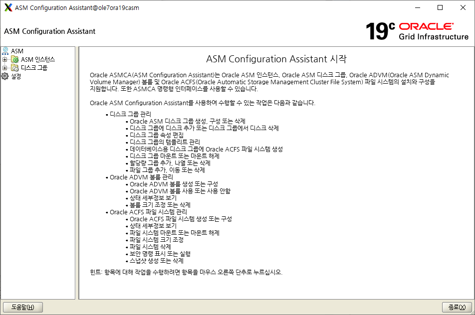 | [oracle@ole7ora19casm bin]$ ./asmca |
