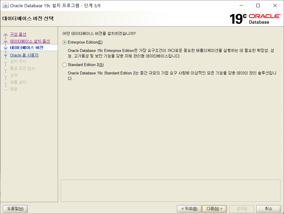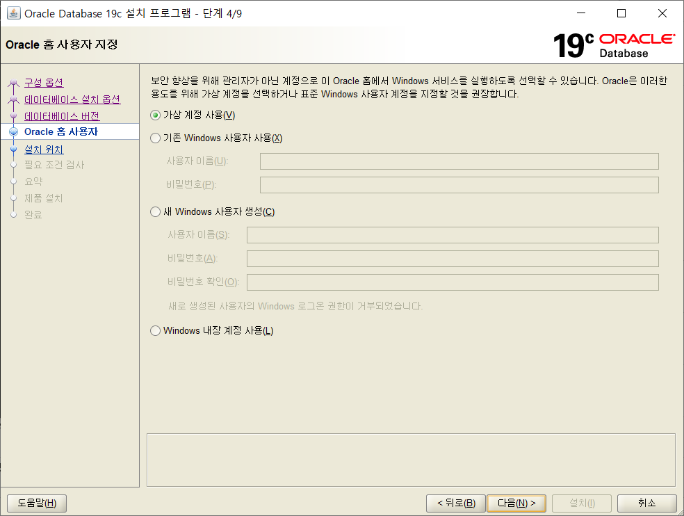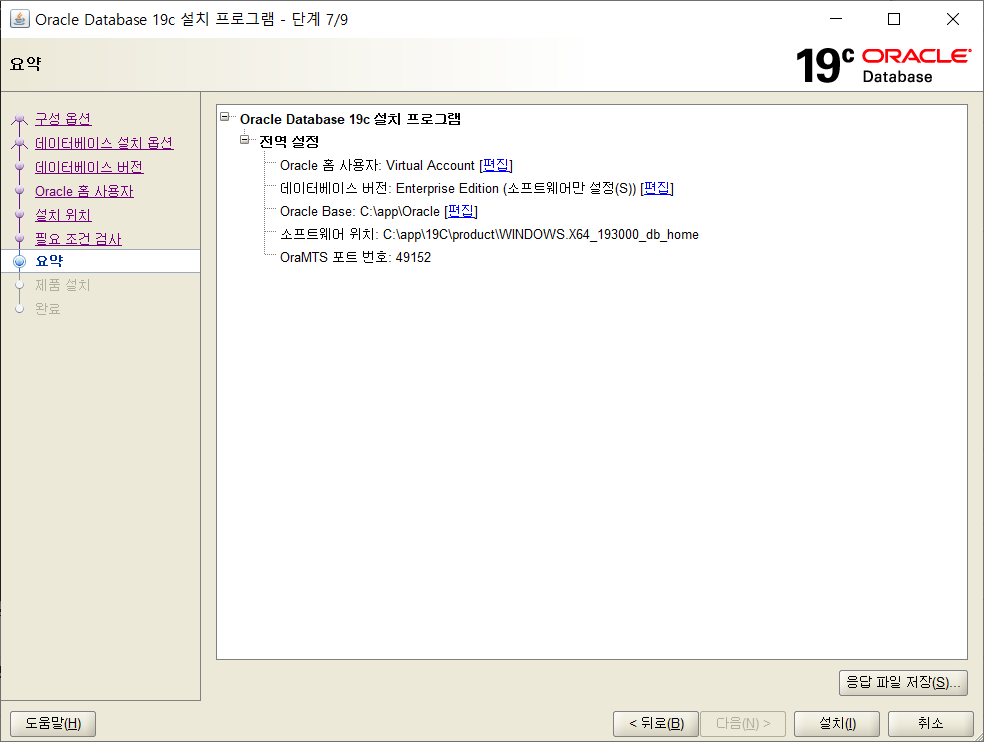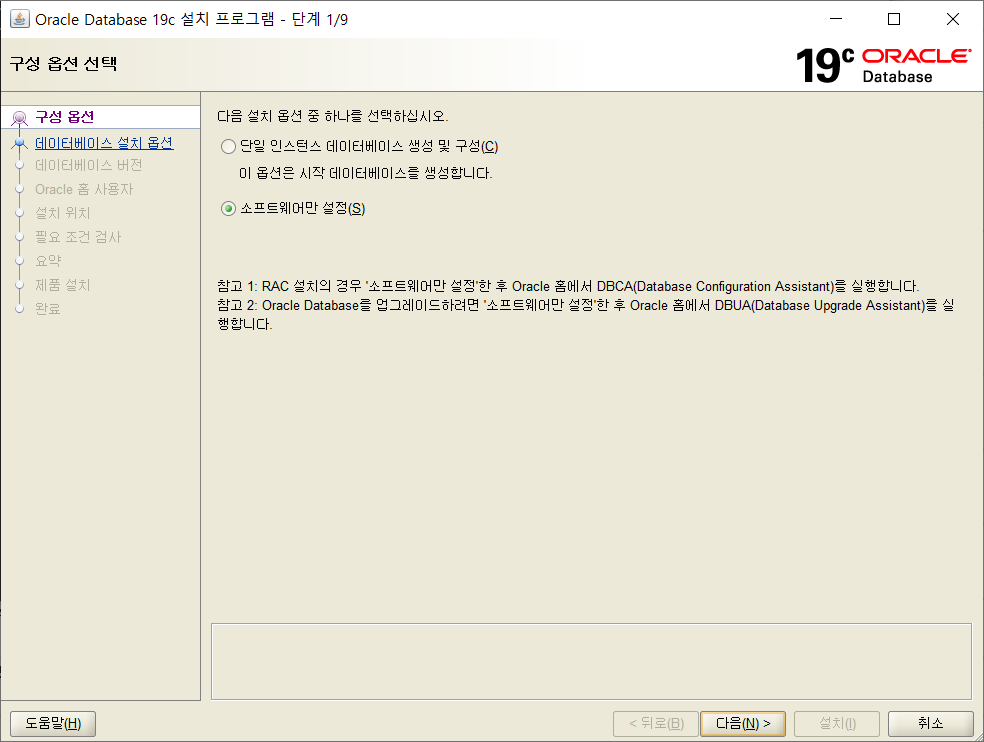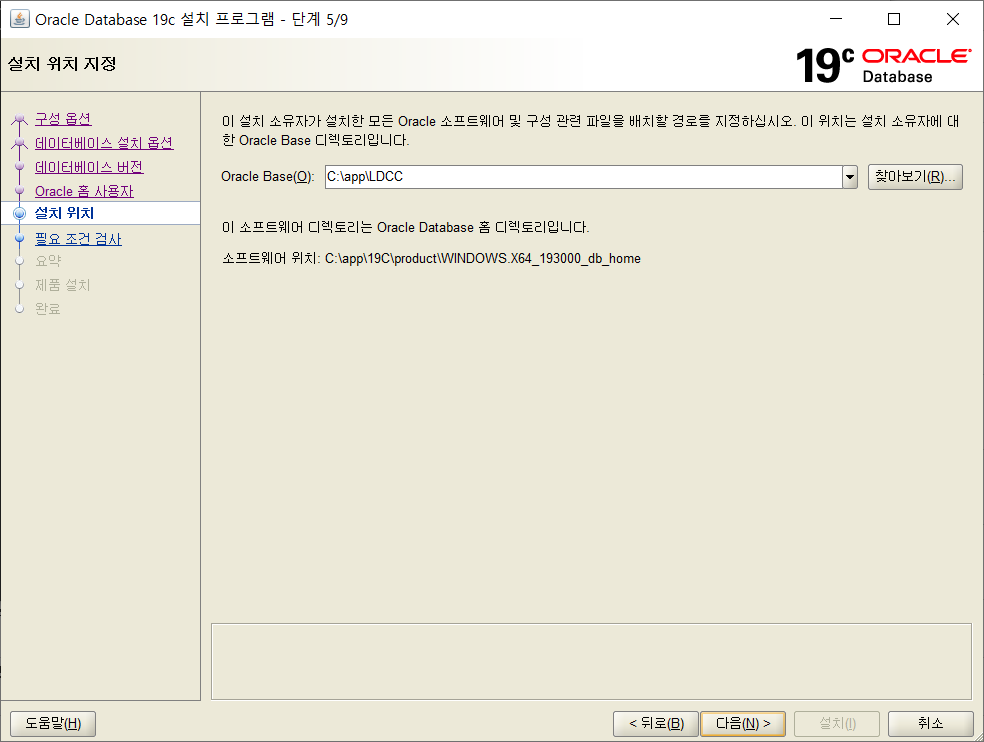 | 소프트웨어 위치: C:\app\19C\product\WINDOWS.X64_193000_db_home |