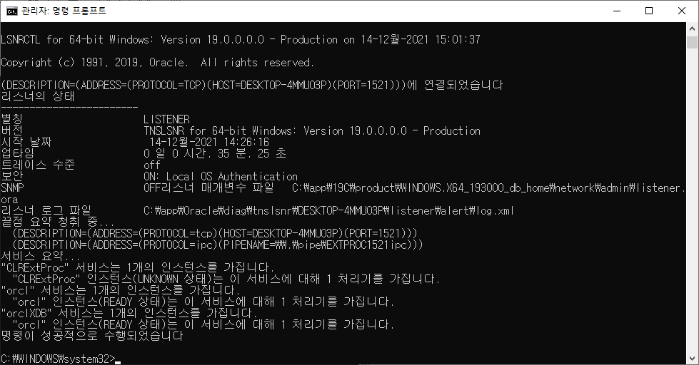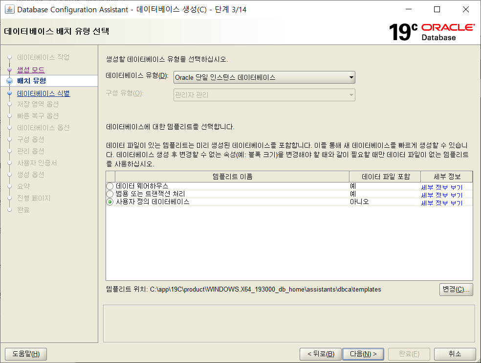 | 소프트웨어 위치: C:\app\19C\product\WINDOWS.X64_193000_db_home |