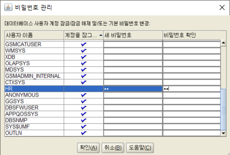![]() 데이터베이스 문자집합 : KO16MSWIN949 - MS Windows 코드 페이지 949 한국어 |
